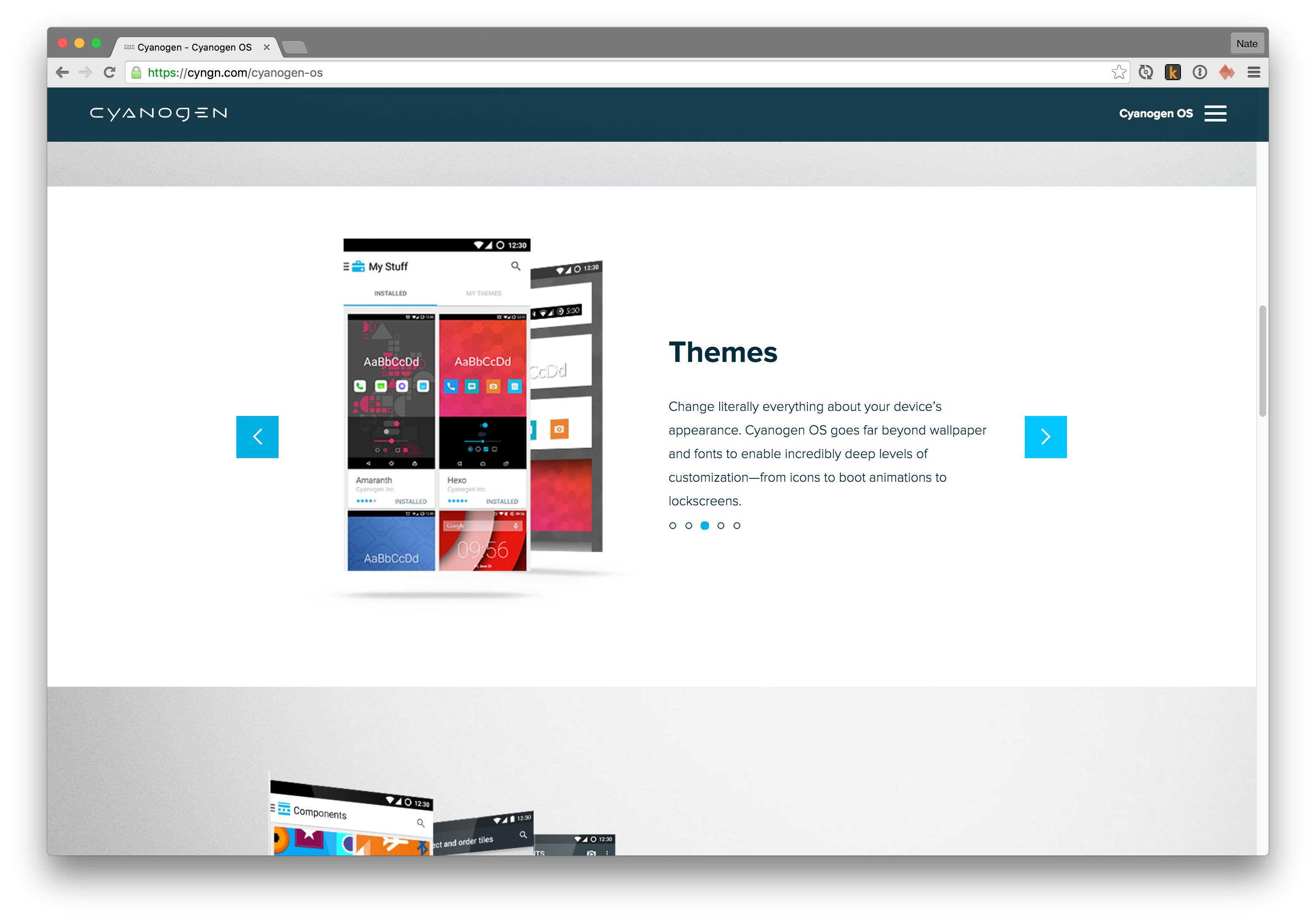 In early 2015 I worked with designers at Cyanogen to develop a new website showcasing the strength and opportunity of the Cyanogen organization and their operating system. I leveraged Craft CMS to build a number of responsive frontend modules which allow Cyanogen's designers and content managers to describe their company and product accurately.