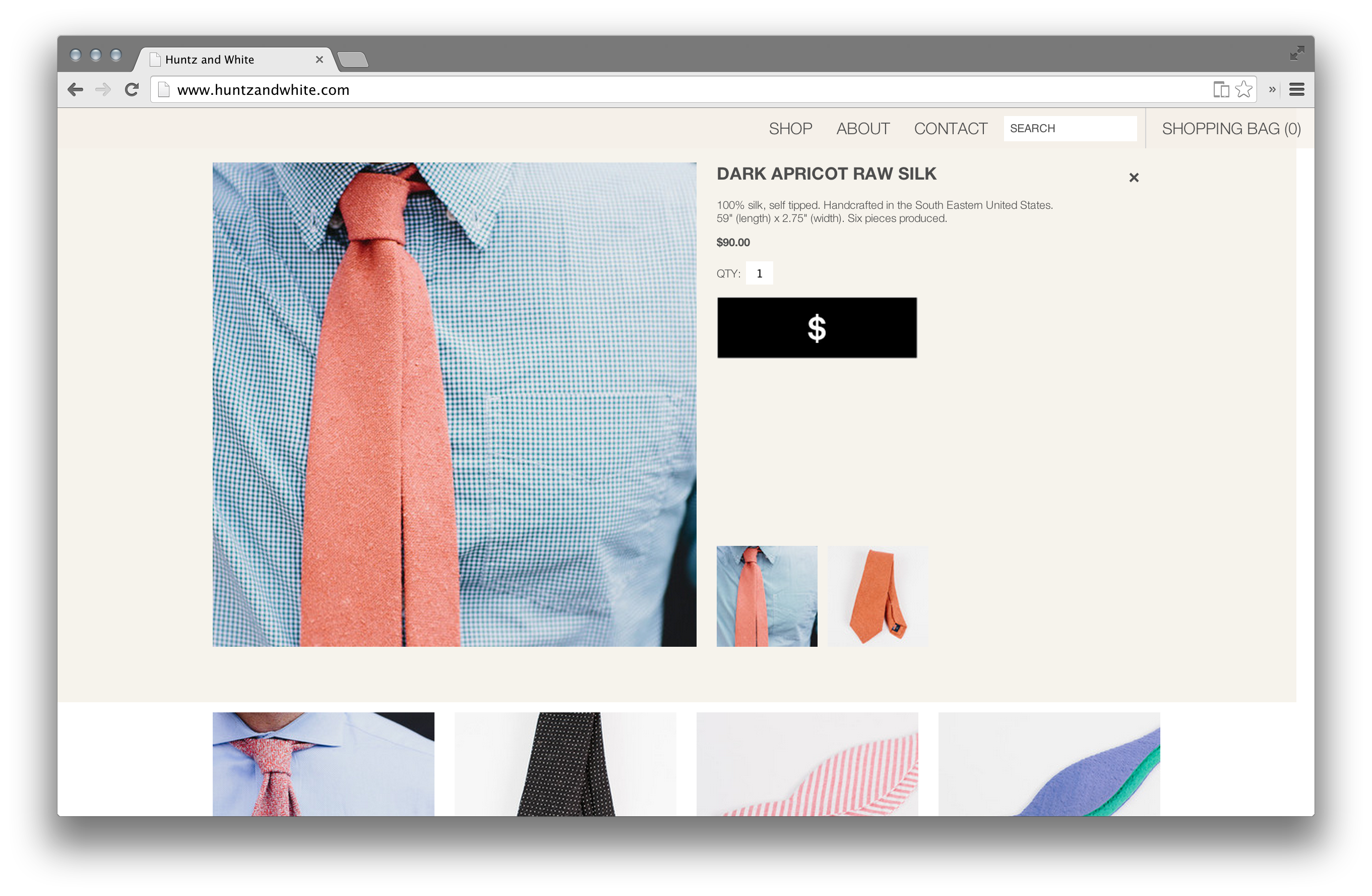 In 2013 I built two Shopify-based sites for Megan Huntz and her business partner Trevor White. Both sites were designed by Office of Brothers and built using Shopify's Liquid templating language.