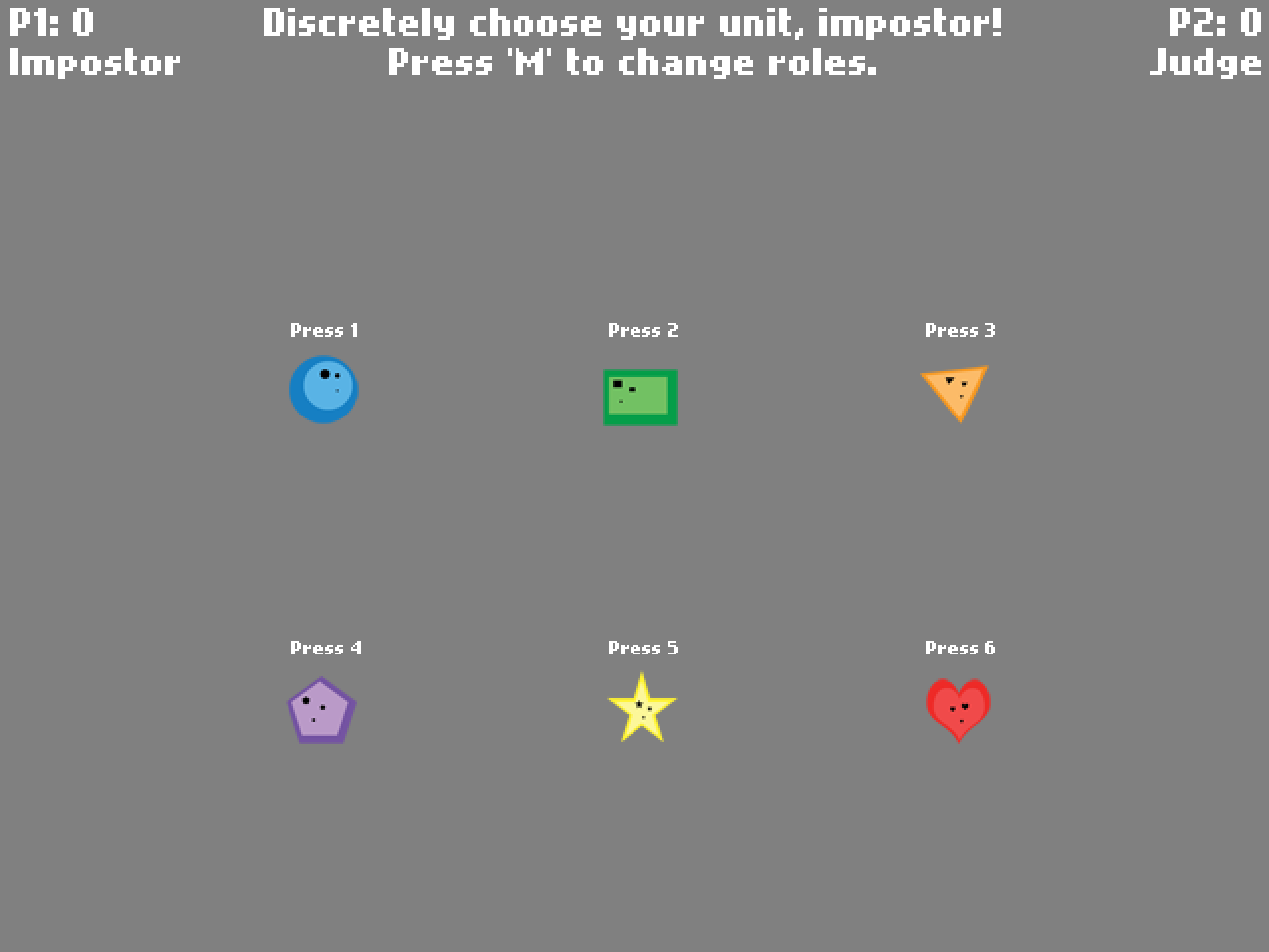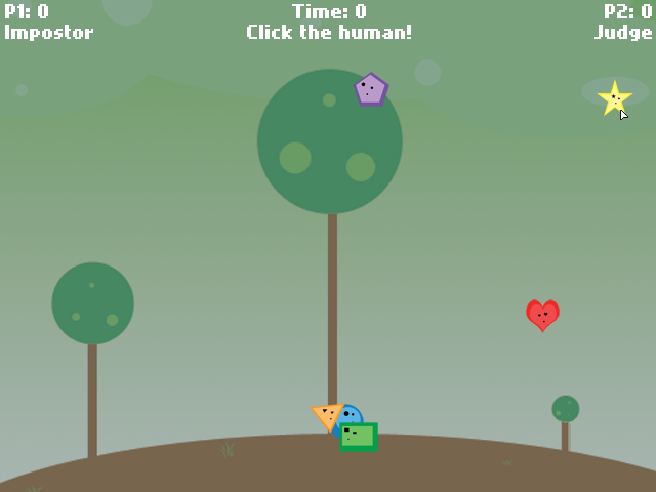 Aptly described by our professor as a "Reverse Turing Test", Sync has one of two players attempt to match the actions of a set of AI units while the second player tries to determine which unit is human-controlled. The "impostor" is given the opportunity to learn both the (simple, physics-driven) control scheme and the actions they must mimic.